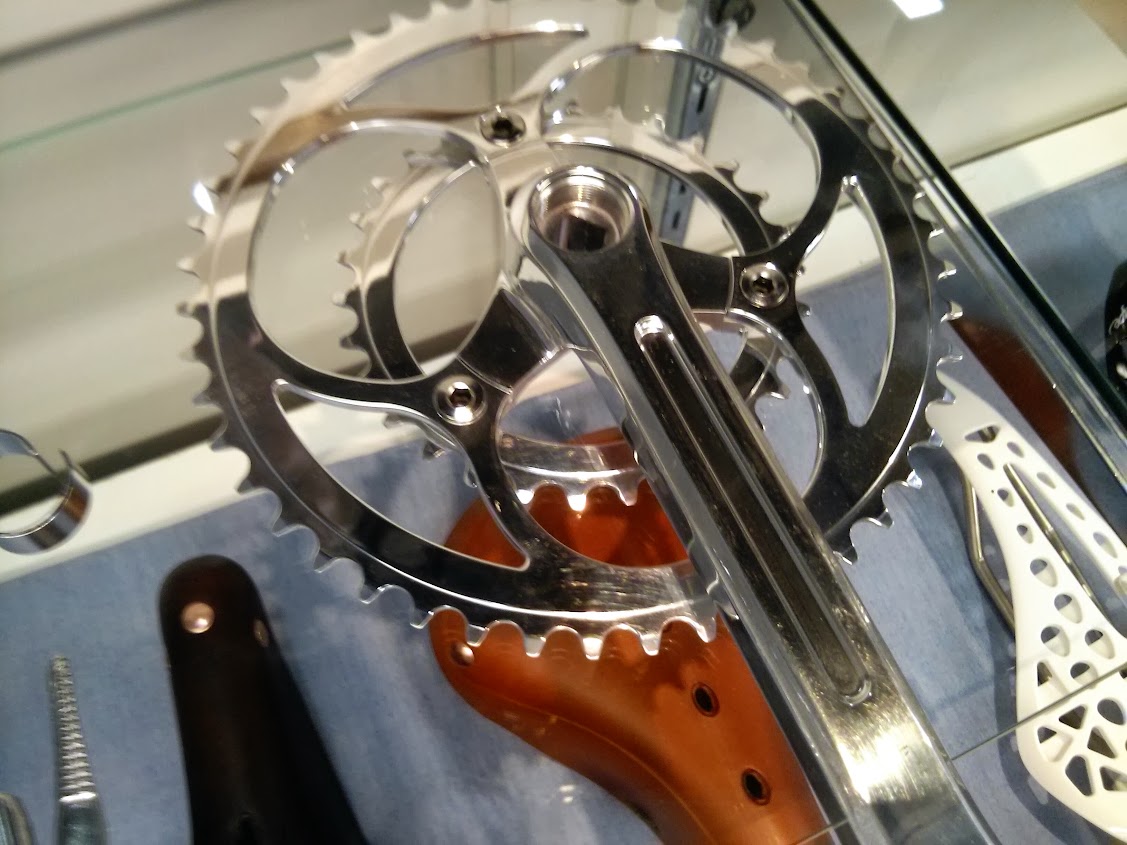 Dia Compe showed off some new ENE Ciclo 3 bolt wide range touring double cranks. Can't wait to get our hands on these. They should work great with our new Grand Randonneur frame.